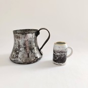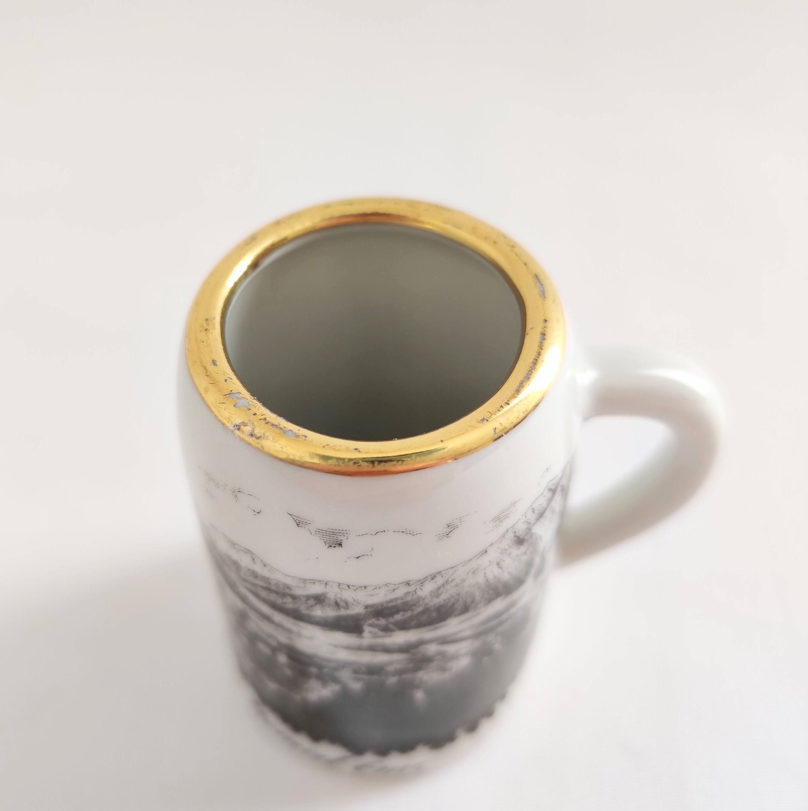 アルプス山脈を背景に、牧場や昔の街並みがモノトーンでぐるりと広がります。金縁もポイントなっており、小さいですが品のある魅力的なカップです。