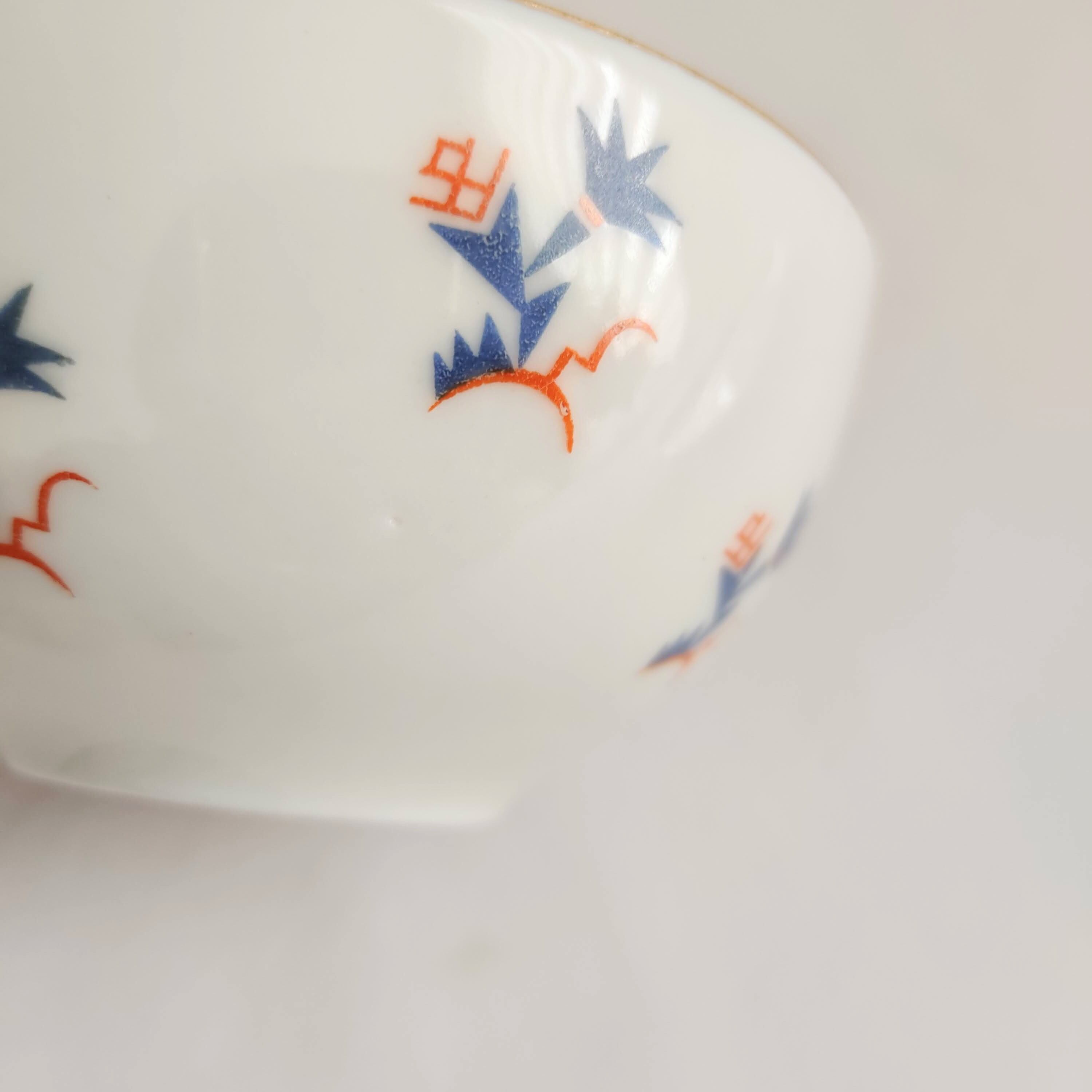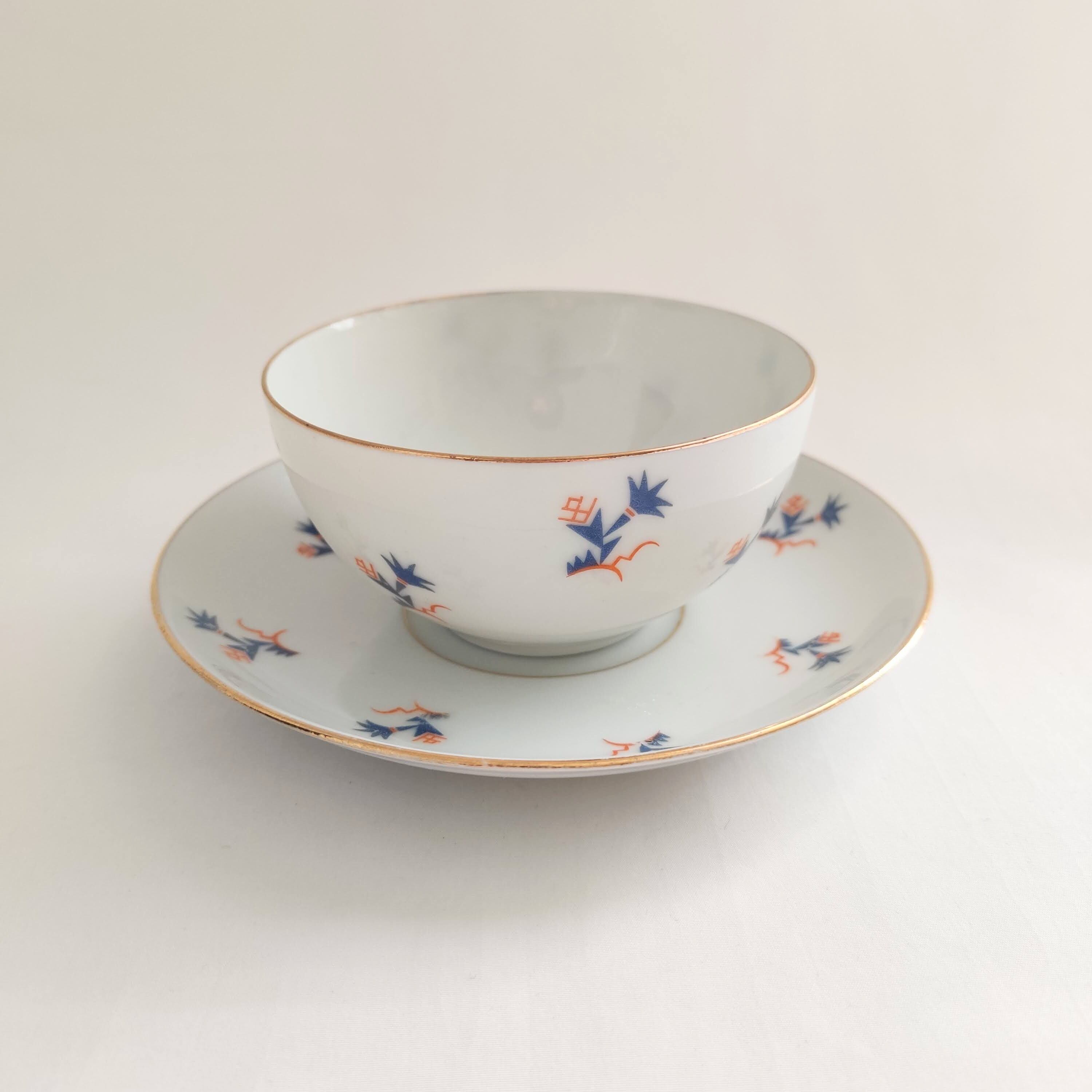 大きなダメージは見られませんが、小キズがございます。ソーサー裏に製造時に付いた銀色の線の付着がございます。(写真をご確認下さい)