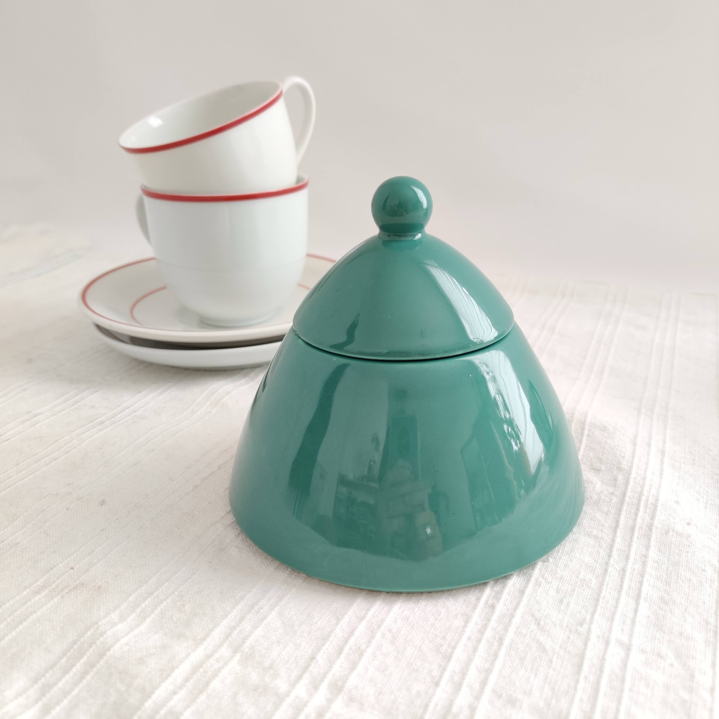 ヴィンテージ 陶器 シュガーポット グリーン イタリア ヨーロッパ アンティーク ブロカント 食器 vintage