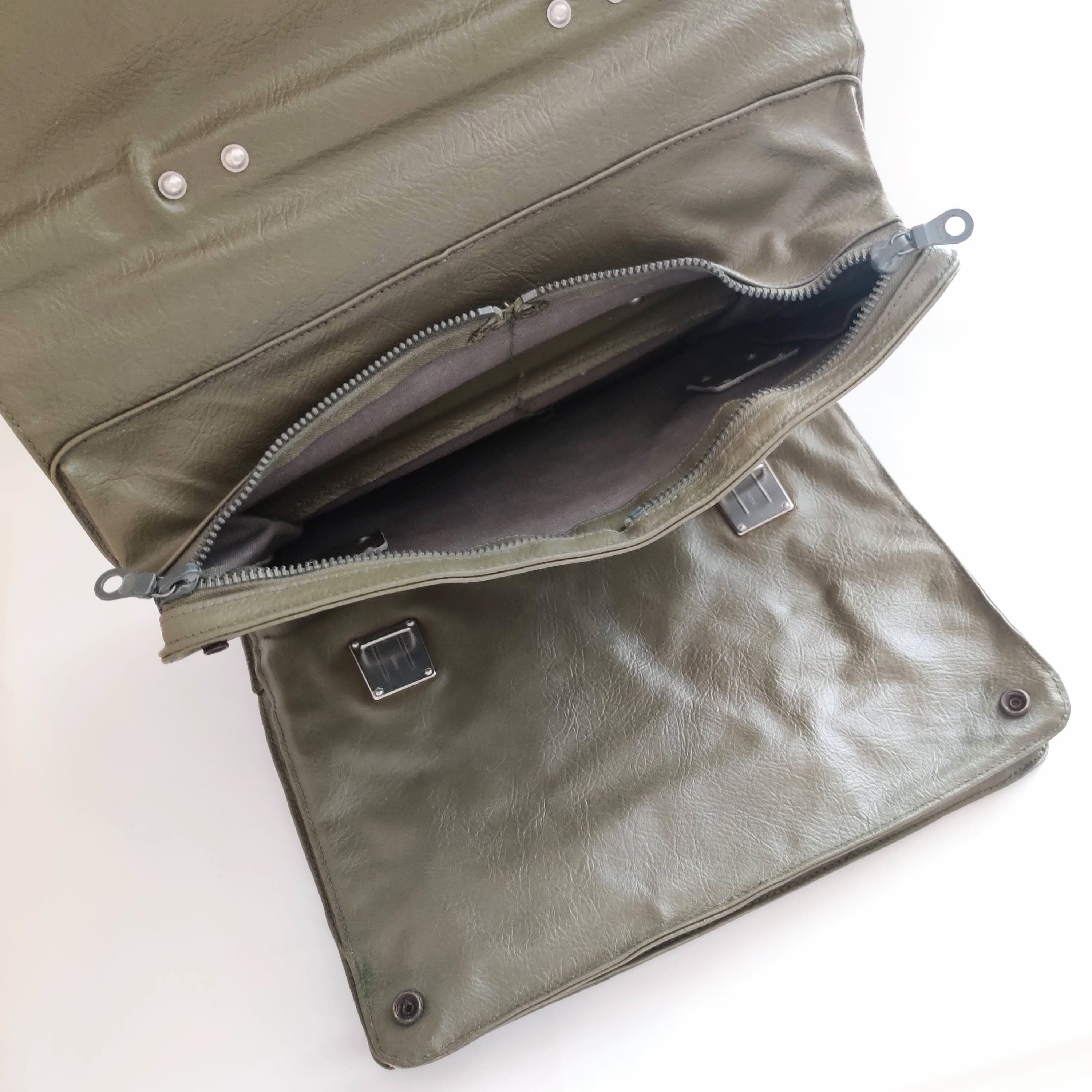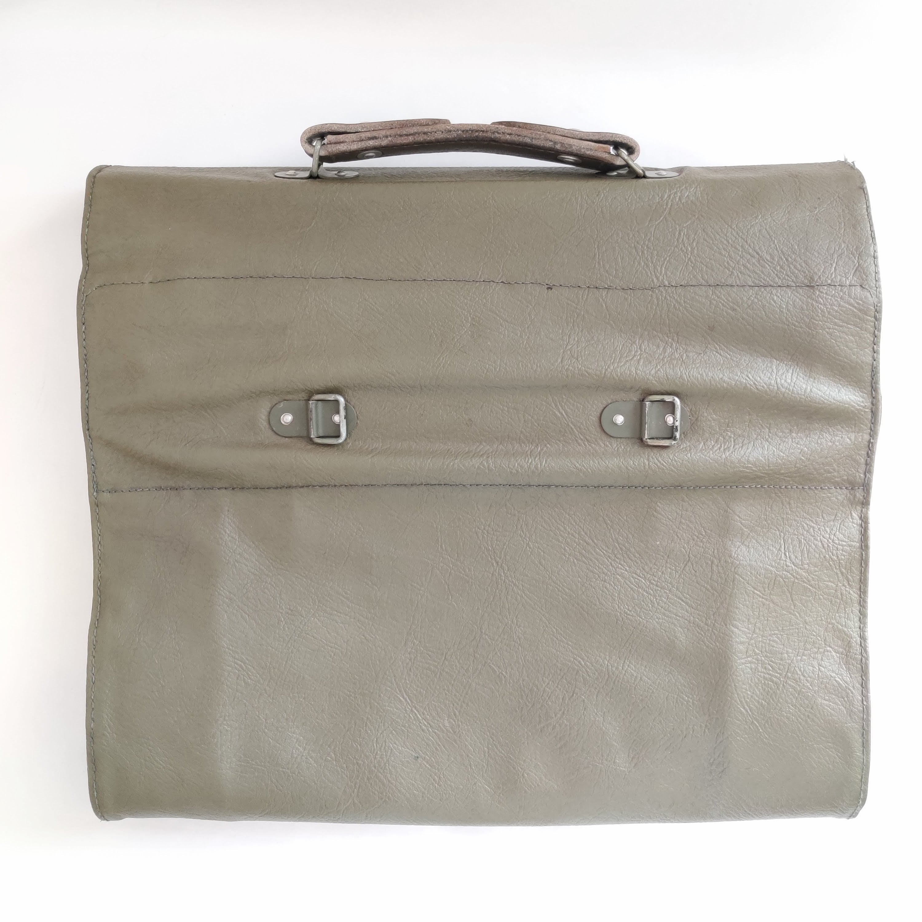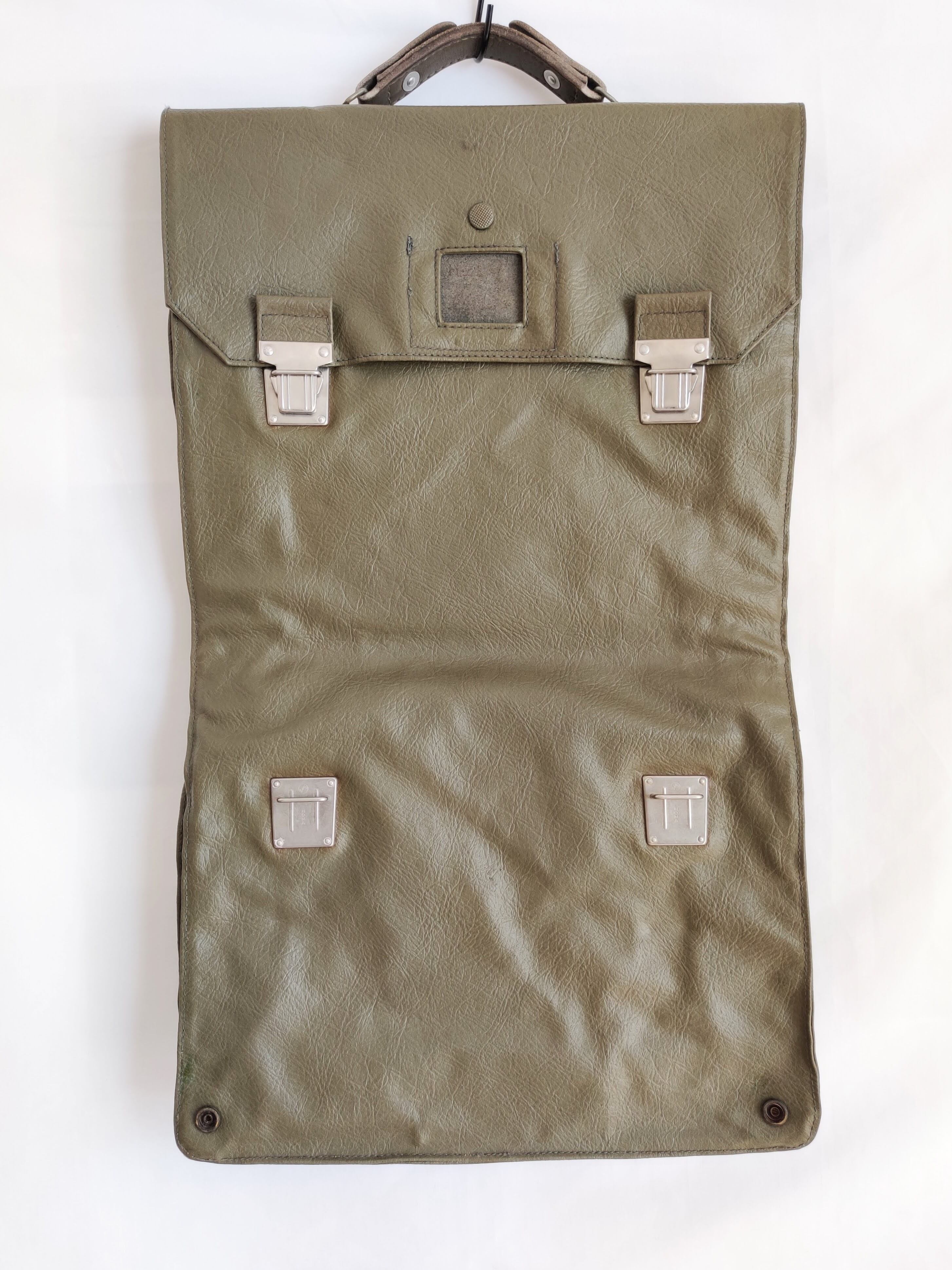 将校用の軍服などのシワを付けたくない衣装の持ち運びに使用されていました。バッグは物を広げると縦長状になり、持ち運ぶ際は折りたたんでバッグサイズとなります。